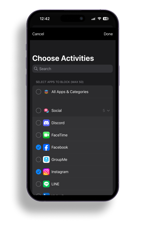 Select distracting apps